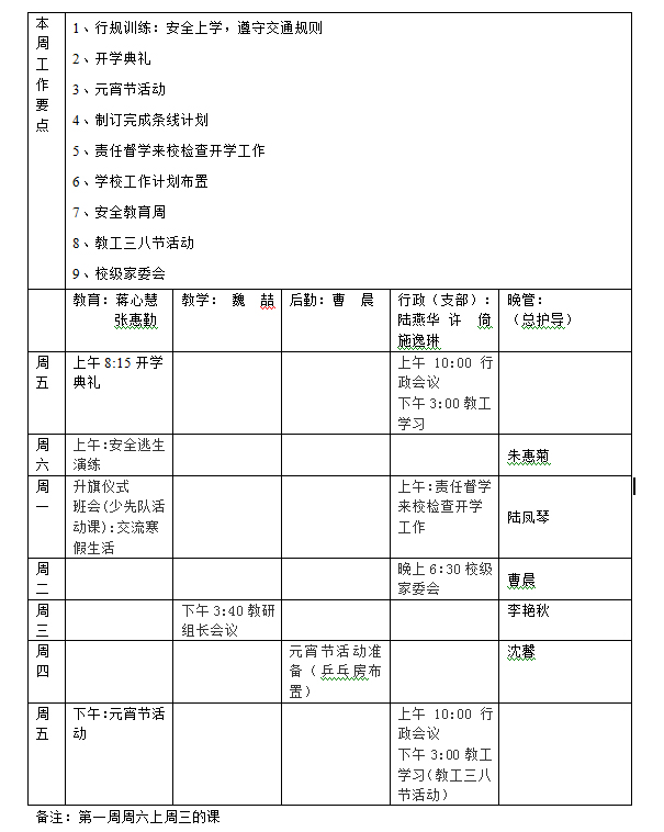 启新小学2017学年第一学期第3周工作安排