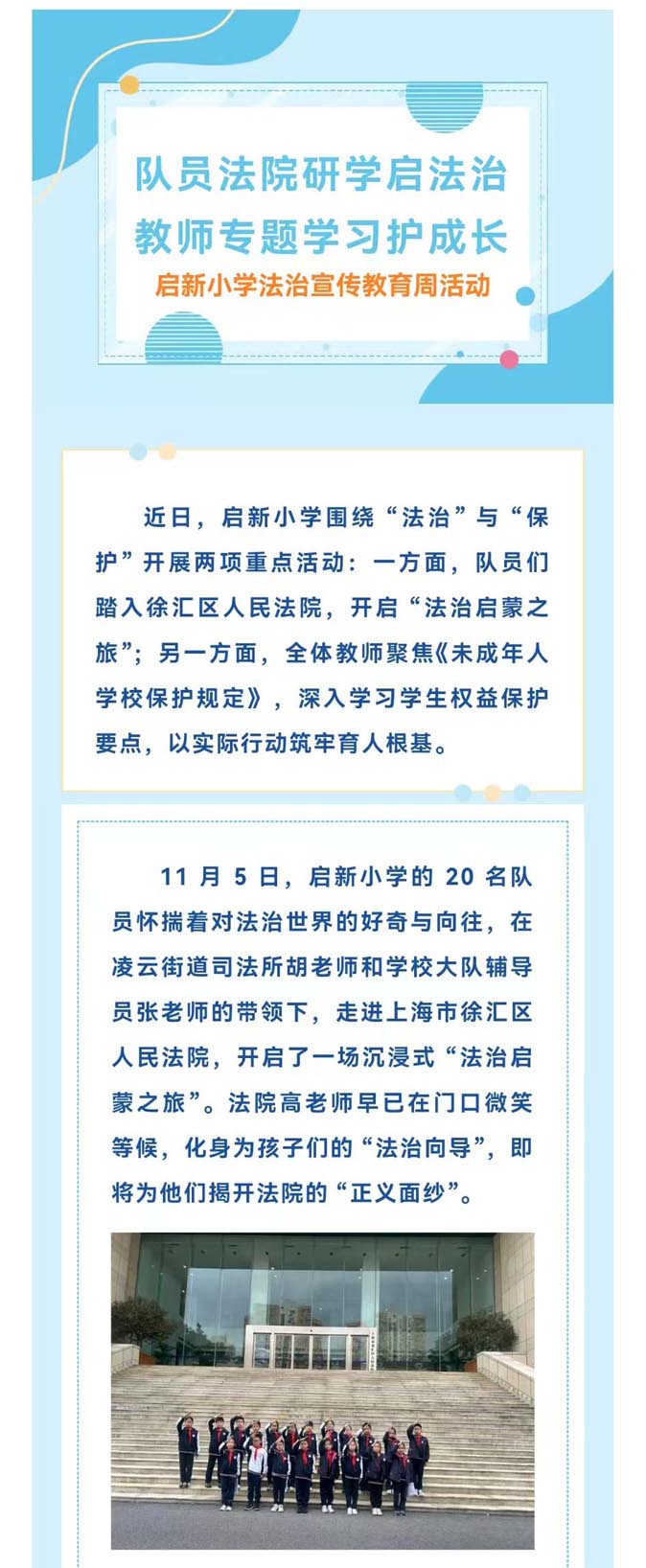 队员法院研学启法治,教师专题学习护成长—— 启新小学法治宣传教育周活动