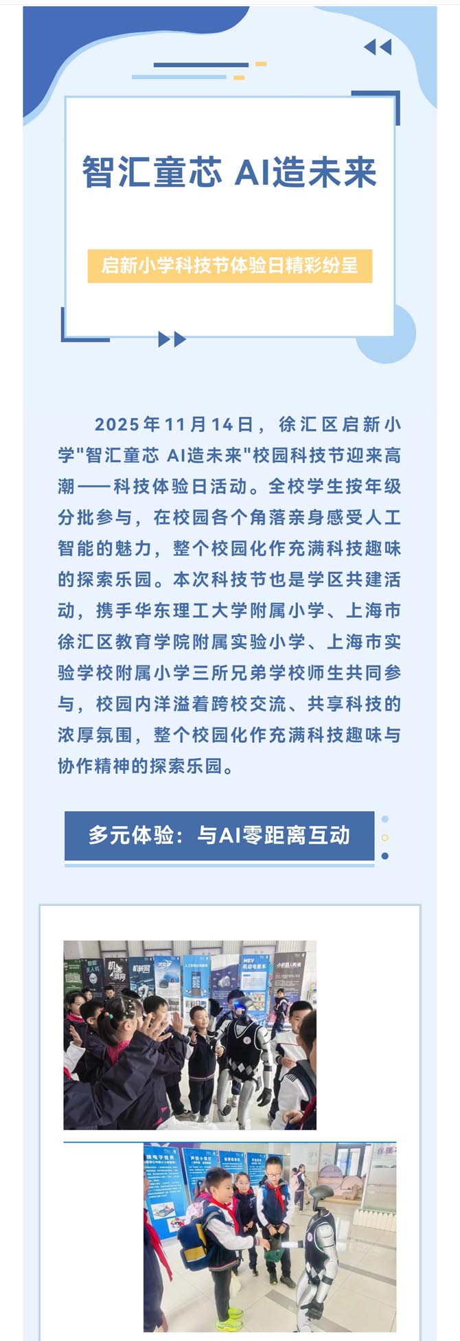 智汇童芯 AI 造未来——记启新小学科技节开幕式