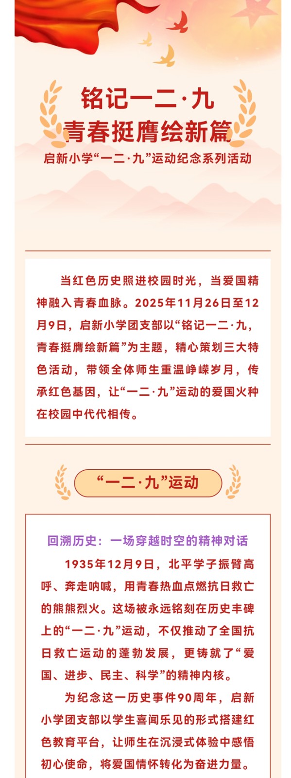 铭记一二•九,青春挺膺绘新篇——启新小学“一二•九”运动纪念系列活动