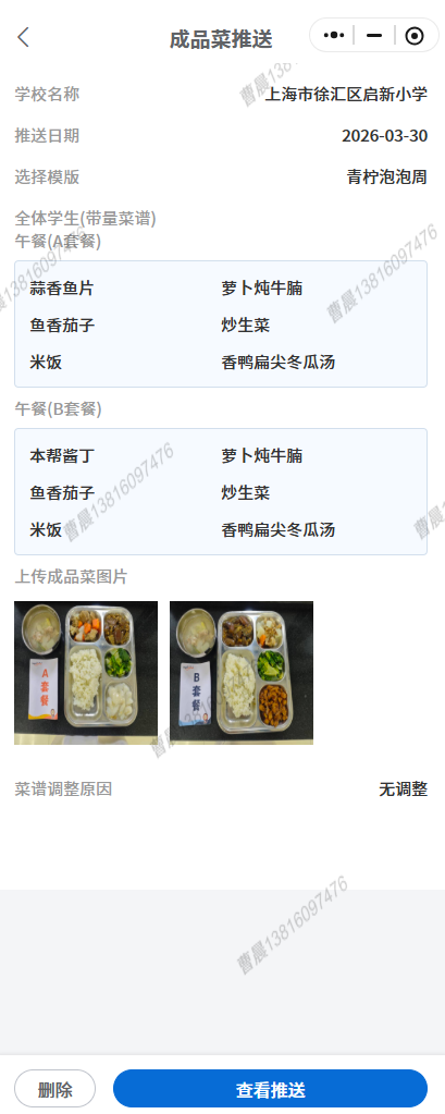 学生每日成品菜公示